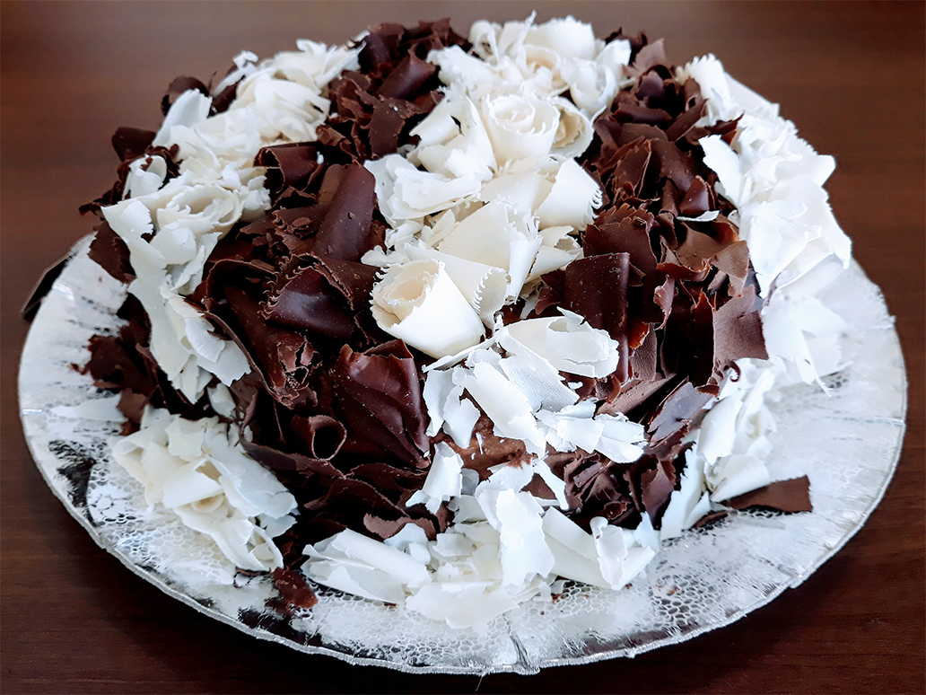 - Raspas de chocolate meio amargo e chocolate branco